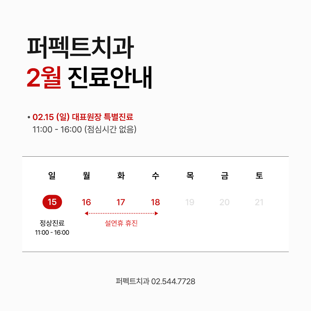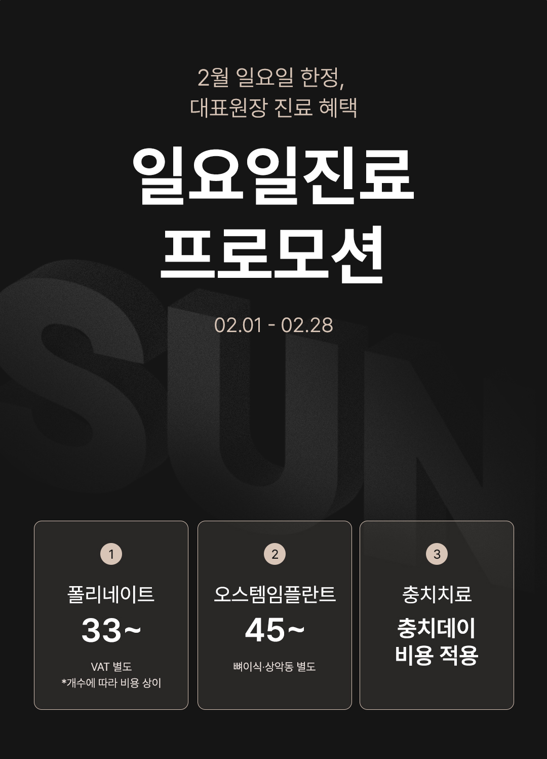 *일요일은 대표원장 단독 진료, 점심시간 없음