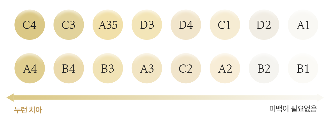 치아미백 시술로 1~3단계 밝아지는 효과가 있습니다.