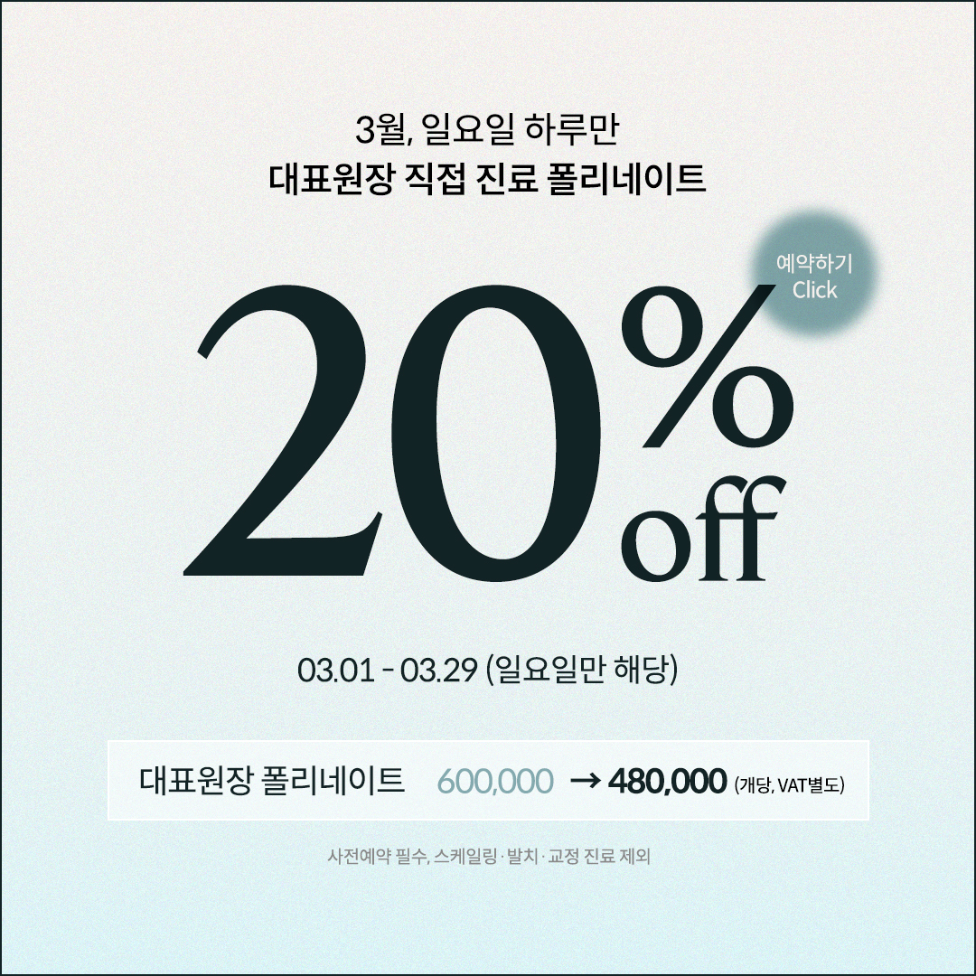 *일요일 점심시간 없음, 대표원장 단독진료, 사전예약 필수